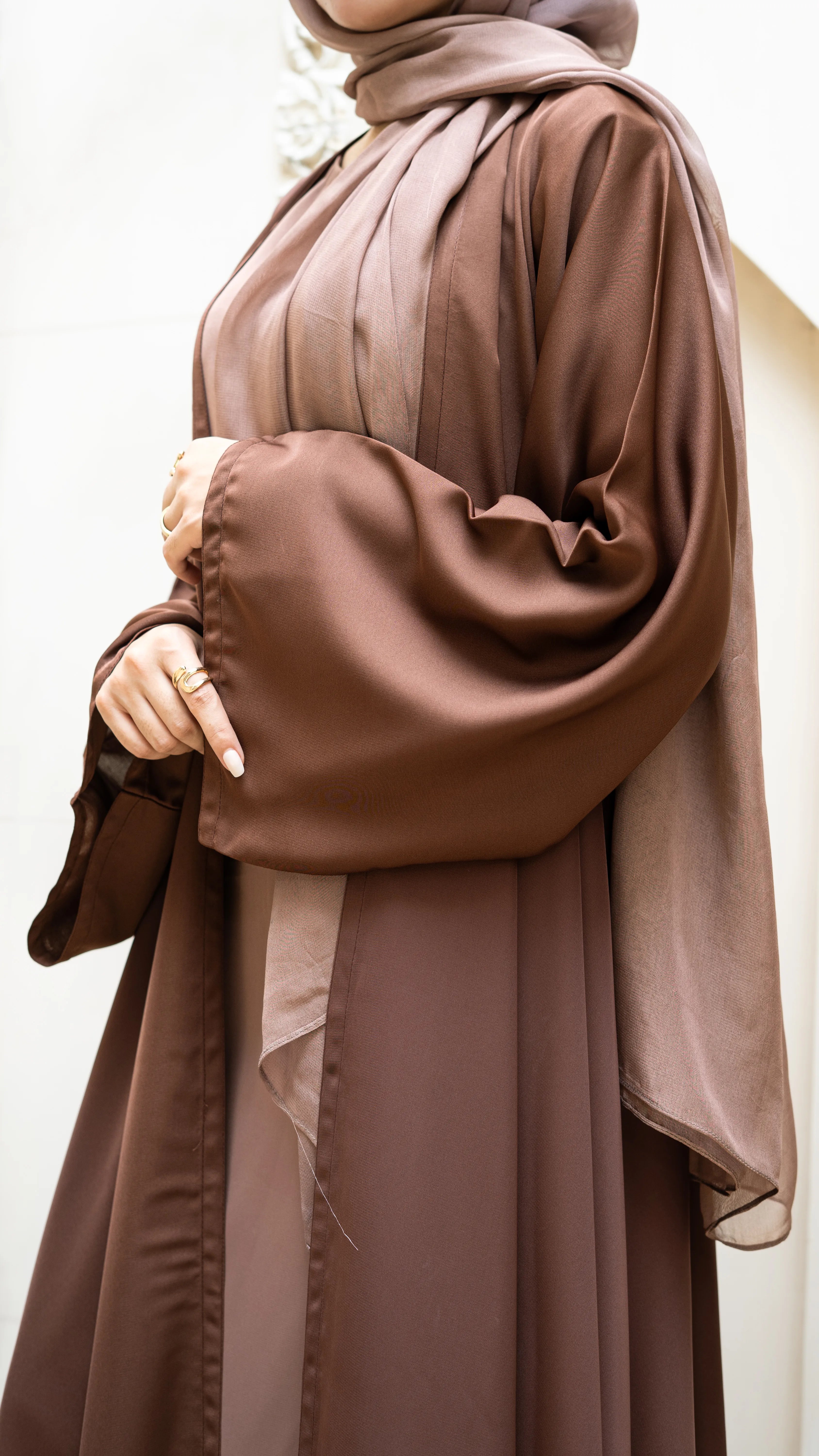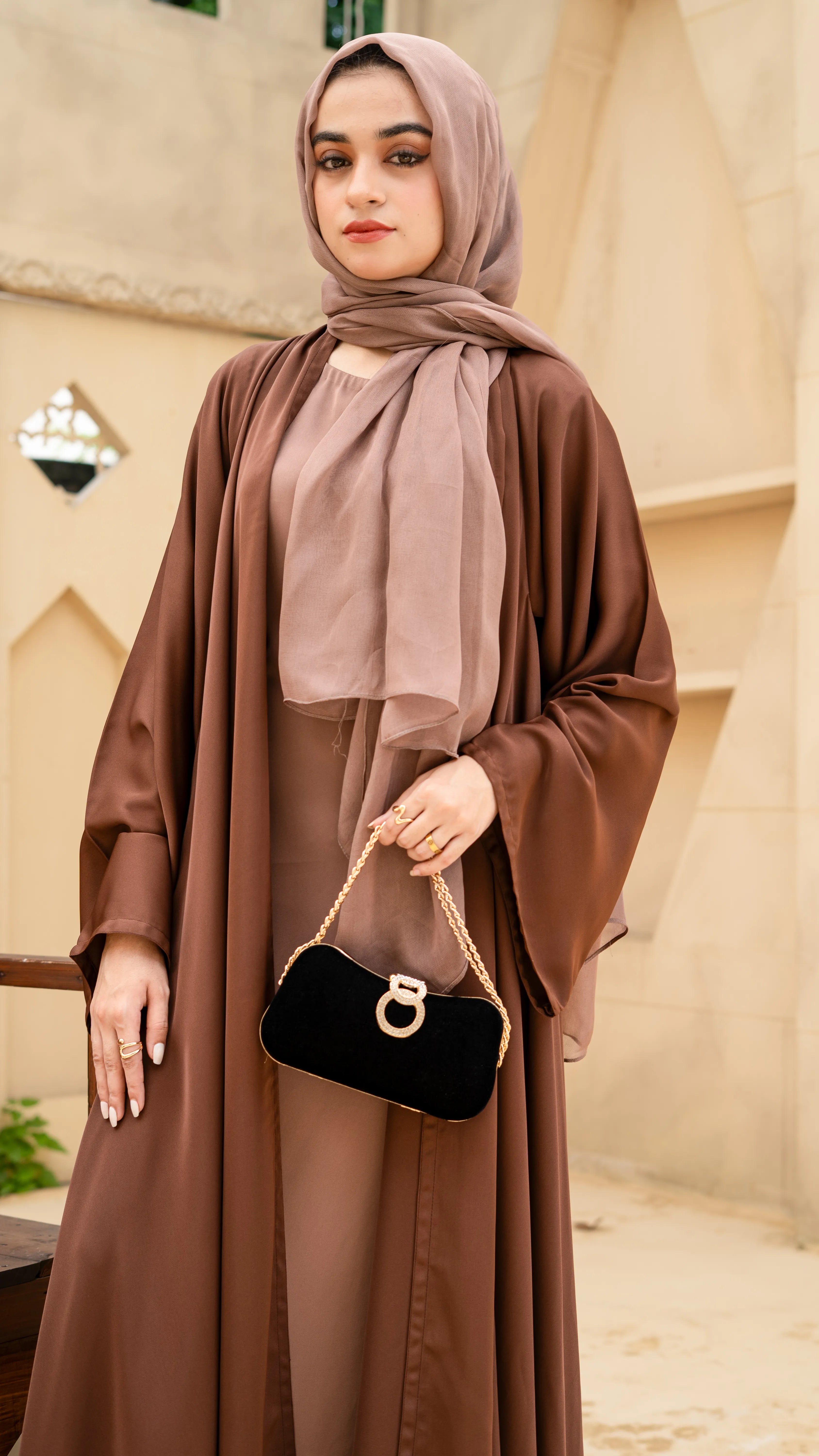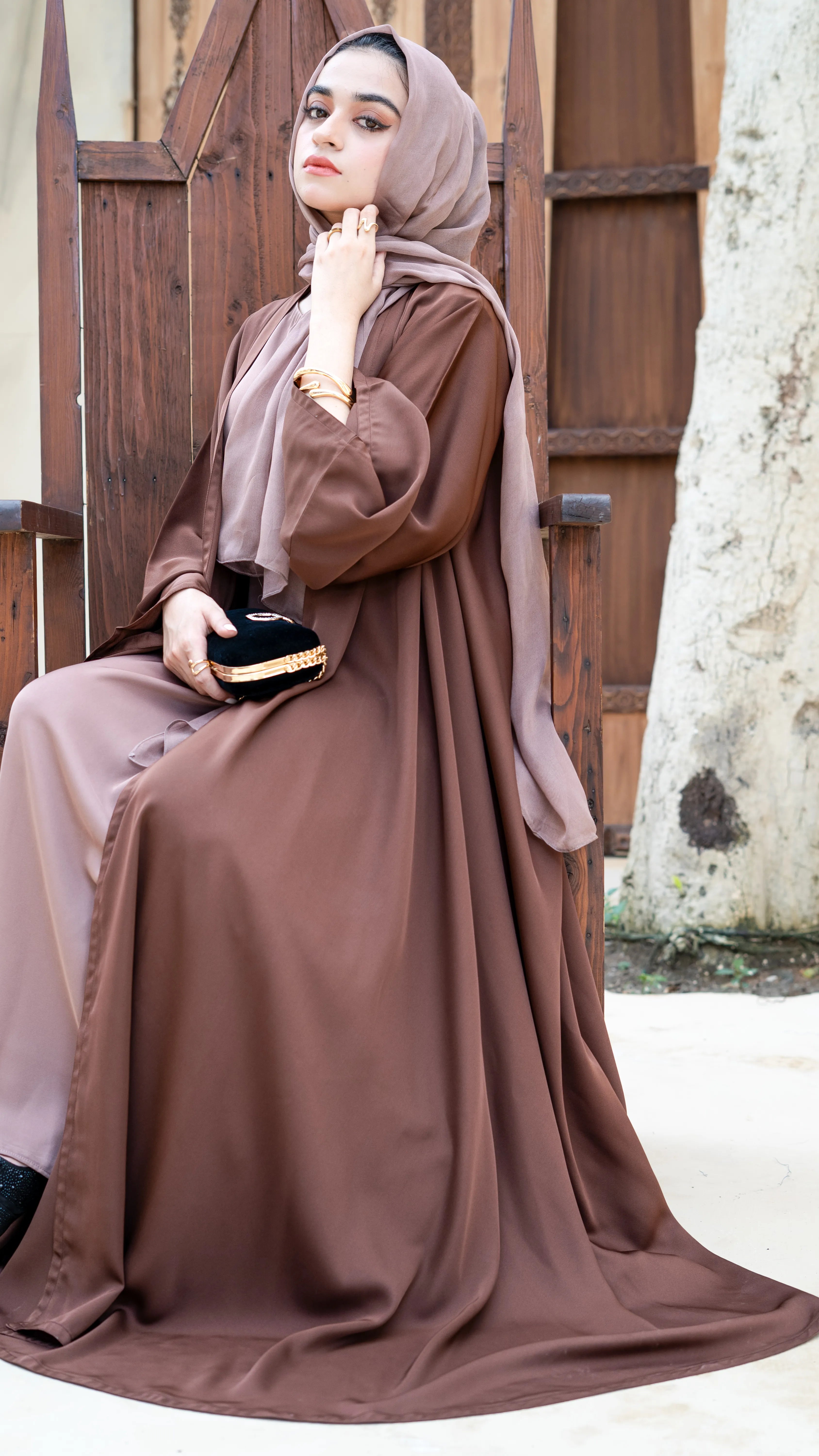 Our Luna Abaya is all about soft elegance and feeling pretty in your own skin. The rich brown flowy fabric and the light brown inner make the perfect match — classy but effortless. It comes with an adjustable inner belt so it fits your body just right, giving you that beautiful, confident look every time. Whether it’s a special day out or just your everyday vibe, Luna has your back 🤎